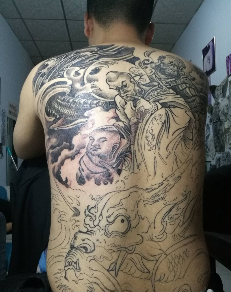 当前位置: 首页 >河北省张家口市纹身店-佛缘刺青工作室纹身图案>罗汉纹身图片_背部老传统纹身图案
