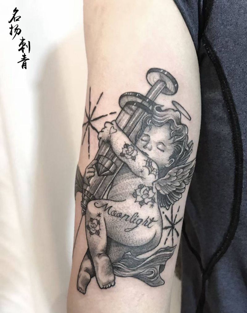 当前位置: 首页 >河北省沧州市纹身店-名扬刺青工作室纹身图案>小天使纹身图片_手臂点刺纹身图案