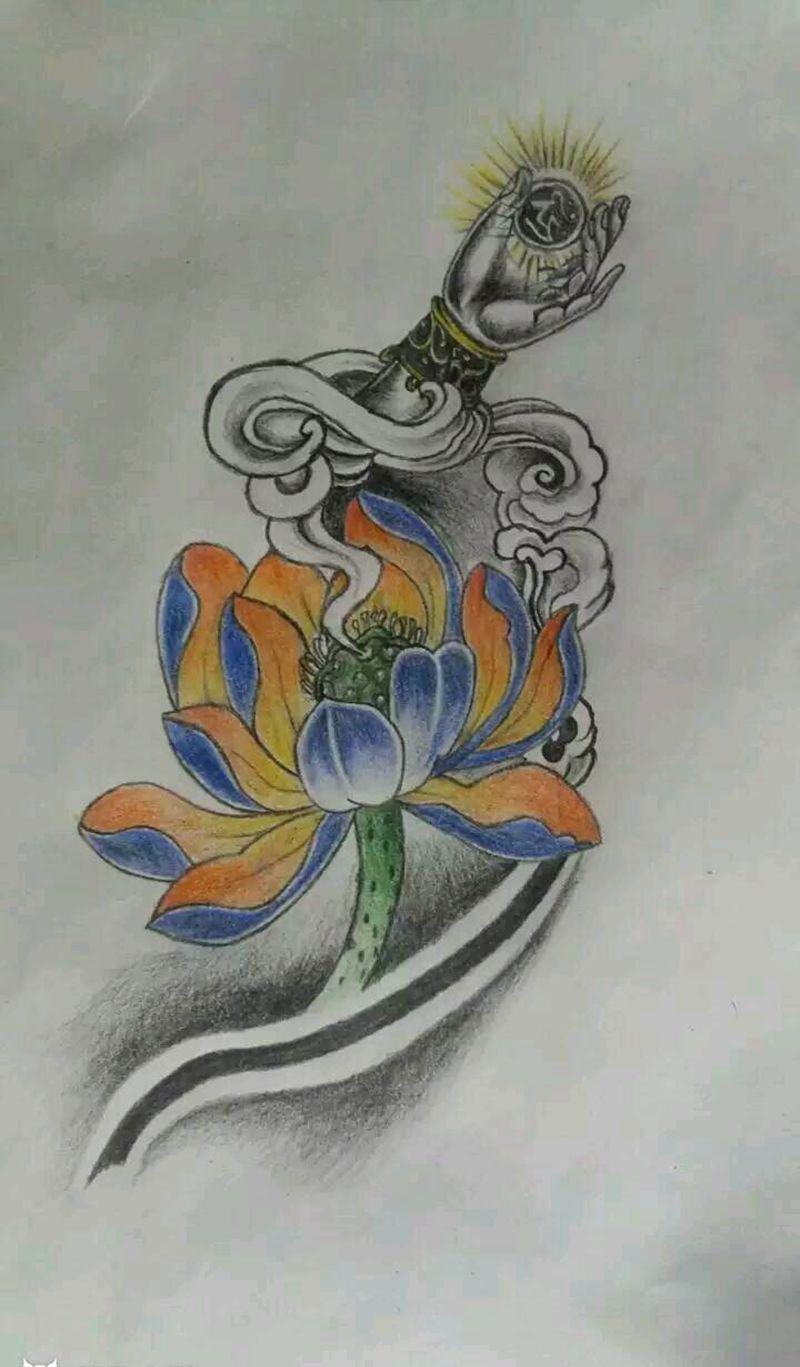 一组15张莲花纹身手