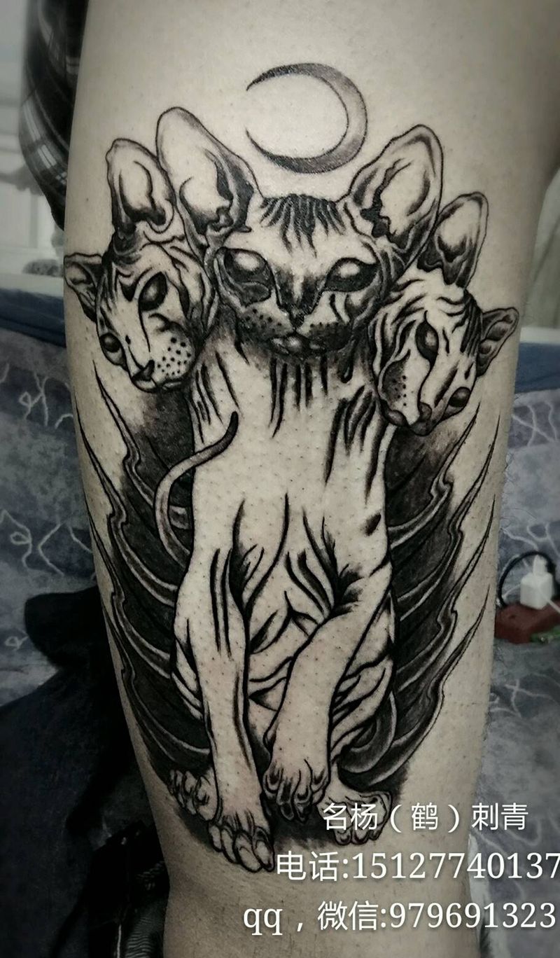 当前位置: 首页 >河北省沧州市纹身店-名扬刺青工作室纹身图案>无毛猫守护神纹身图片