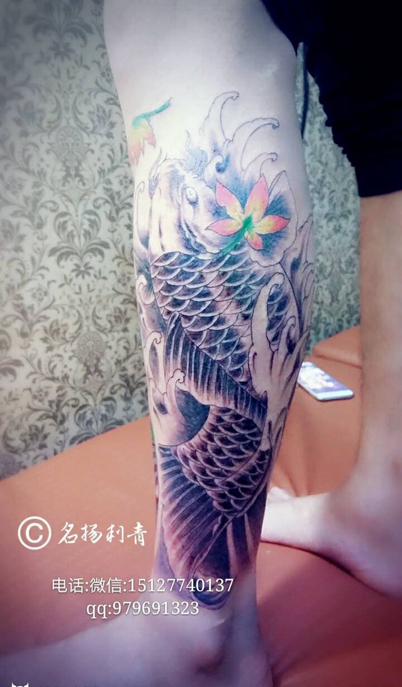 当前位置: 首页 >河北省沧州市纹身店-名扬刺青工作室纹身图案>小腿鲤鱼纹身图片