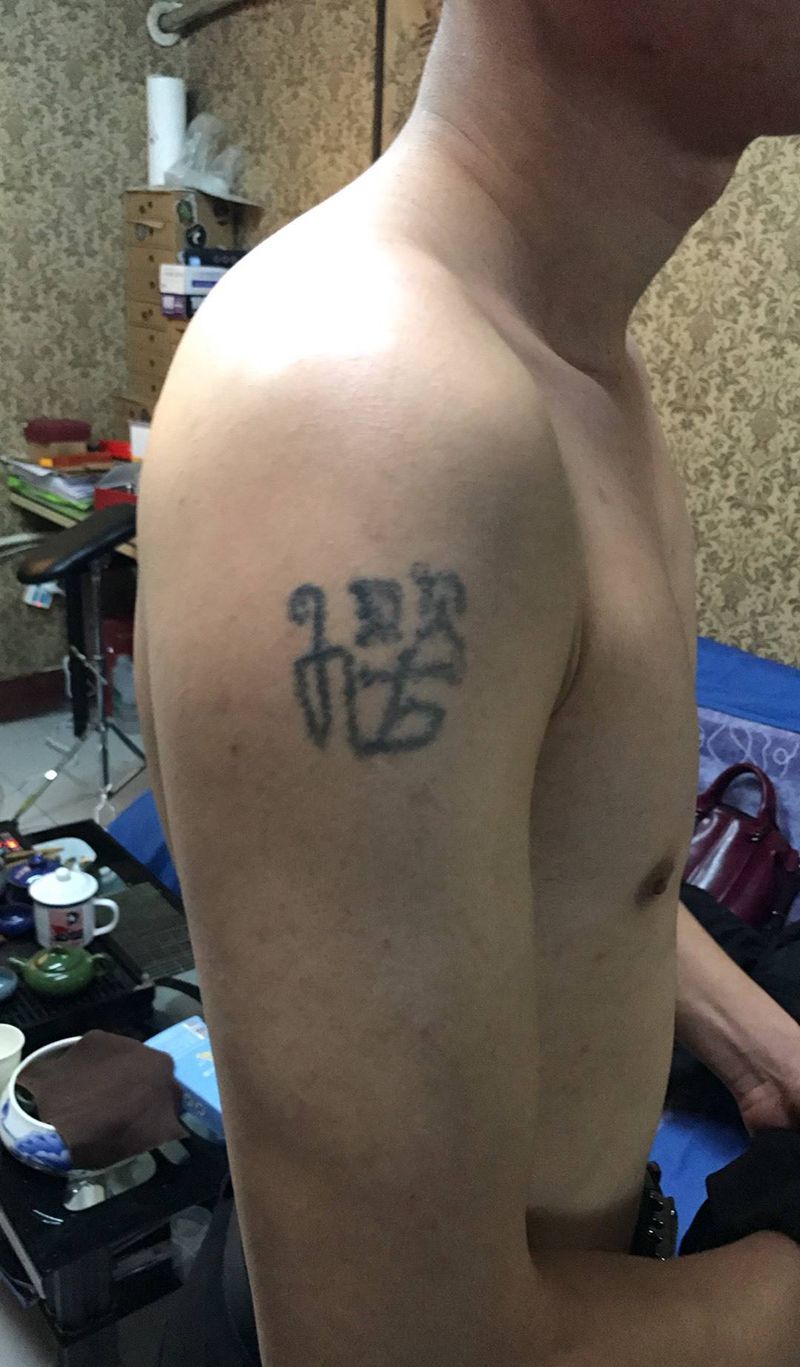 当前位置: 首页 >河北省沧州市纹身店-名扬刺青工作室纹身图案>遮盖上臂字母纹身图片