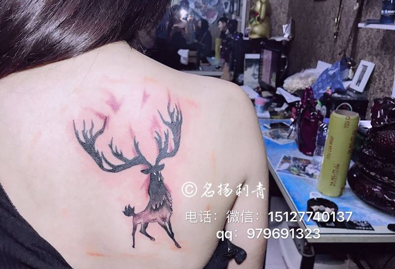 当前位置: 首页 >河北省沧州市纹身店-名扬刺青工作室纹身图案>后肩麋鹿纹身图片