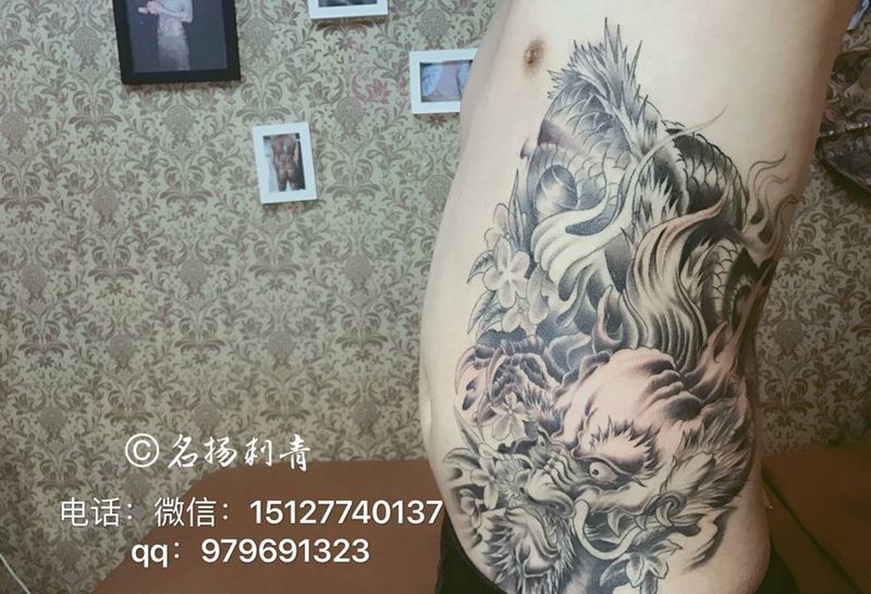 当前位置: 首页 >河北省沧州市纹身店-名扬刺青工作室纹身图案>侧腰龙纹身图片
