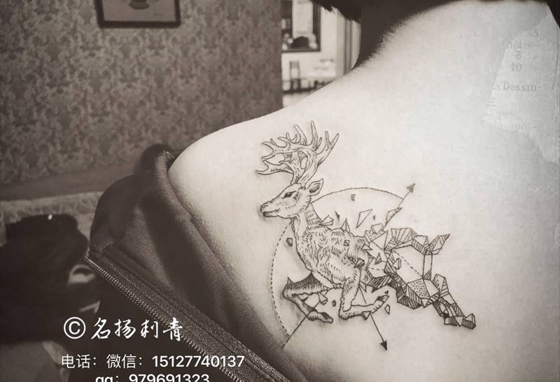 当前位置: 首页 >河北省沧州市纹身店-名扬刺青工作室纹身图案>几何麋鹿纹身图片
