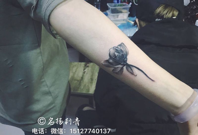 当前位置: 首页 >河北省沧州市纹身店-名扬刺青工作室纹身图案>遮盖水墨荷花纹身图片