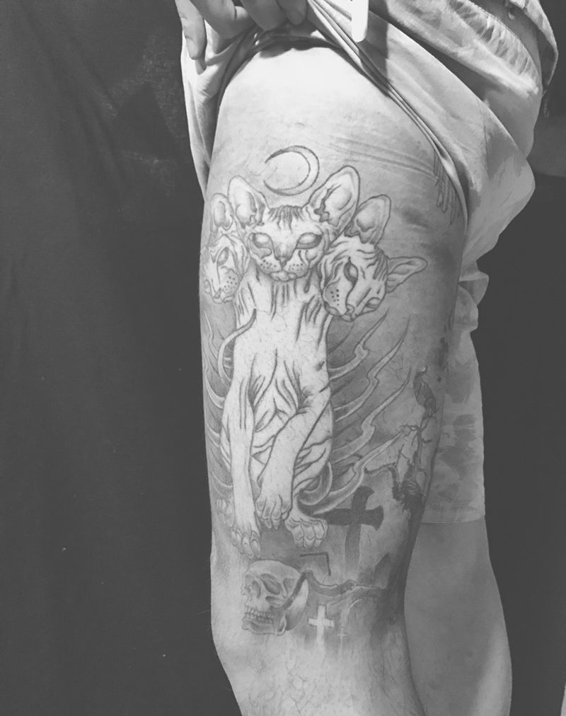 当前位置: 首页 >河北省沧州市纹身店-名扬刺青工作室纹身图案>欧美原创包腿纹身图片