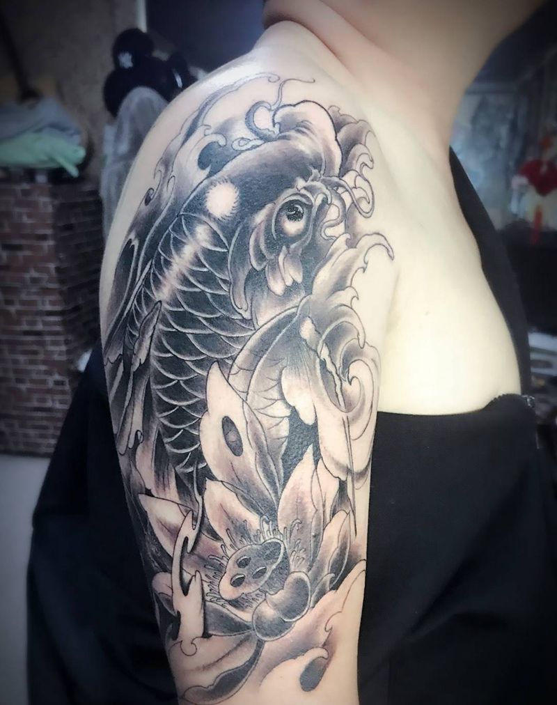 当前位置: 首页 >河北省沧州市纹身店-名扬刺青工作室纹身图案>上臂鲤鱼纹身图片