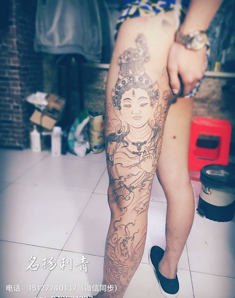 当前位置: 首页 >河北省沧州市纹身店-名扬刺青工作室纹身图案>花腿初步走线纹身图片