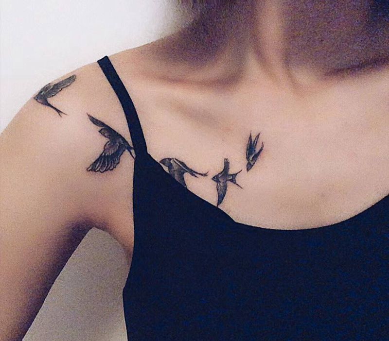 锁骨 燕子纹身图片