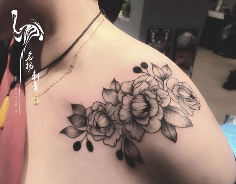 • 纹身吧推荐的披肩图腾半胛纹身图案作品展示