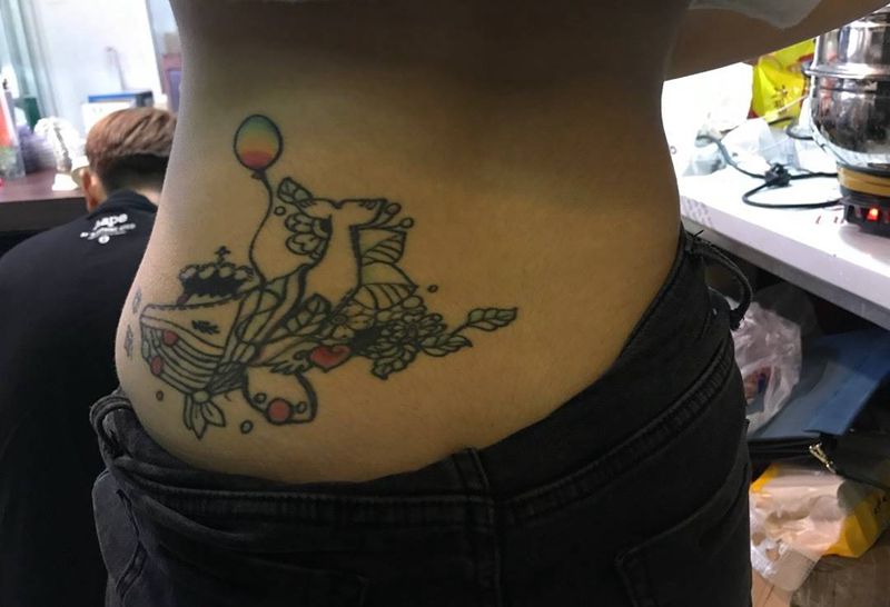 • T关于私处得爱!纹身图片_成品腹部清新字符图腾纹身图案