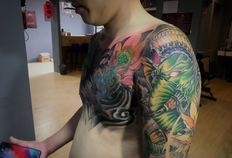 当前位置: 首页 >河北省沧州市纹身店-名扬刺青工作室纹身图案>象神纹身图片_肩部新传统老传统纹身图案