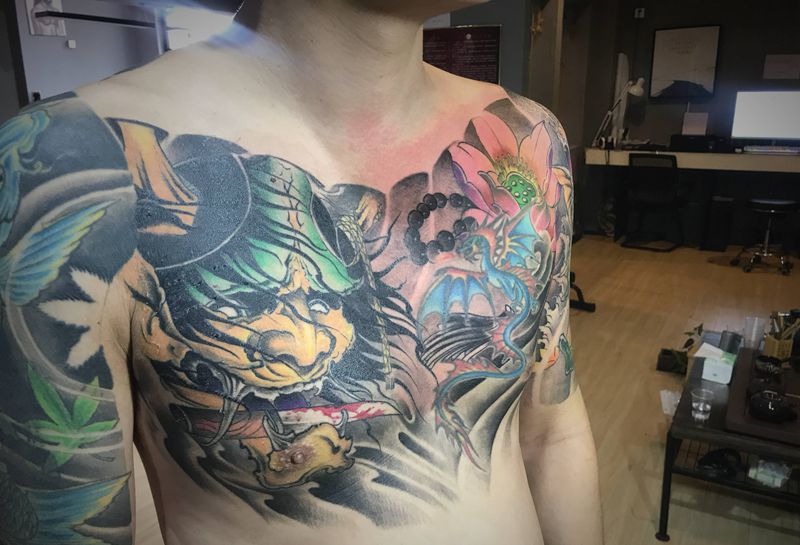 当前位置: 首页 >河北省沧州市纹身店-名扬刺青工作室纹身图案>花胸 修改上色纹身图片_胸部老传统新传统纹身图案