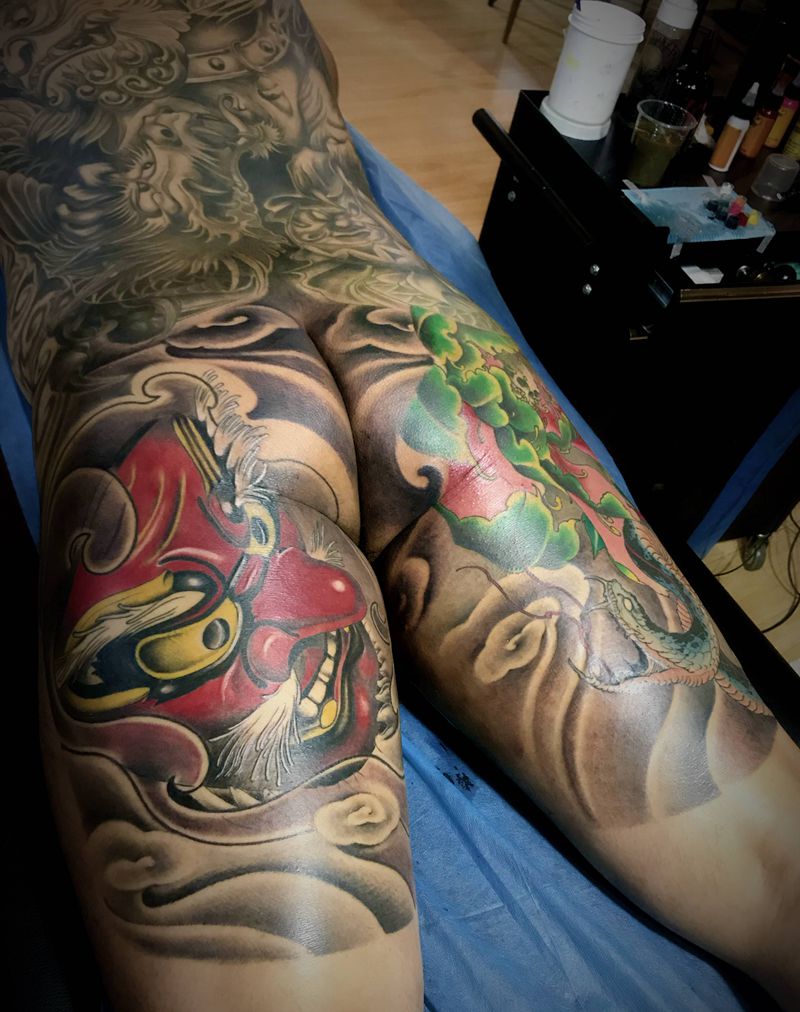天狗纹身图片_臀部老传统新传统纹身图案