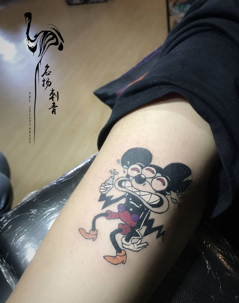 当前位置: 首页 >河北省沧州市纹身店-名扬刺青工作室纹身图案>米老鼠纹身图片_手臂New School水彩纹身图案