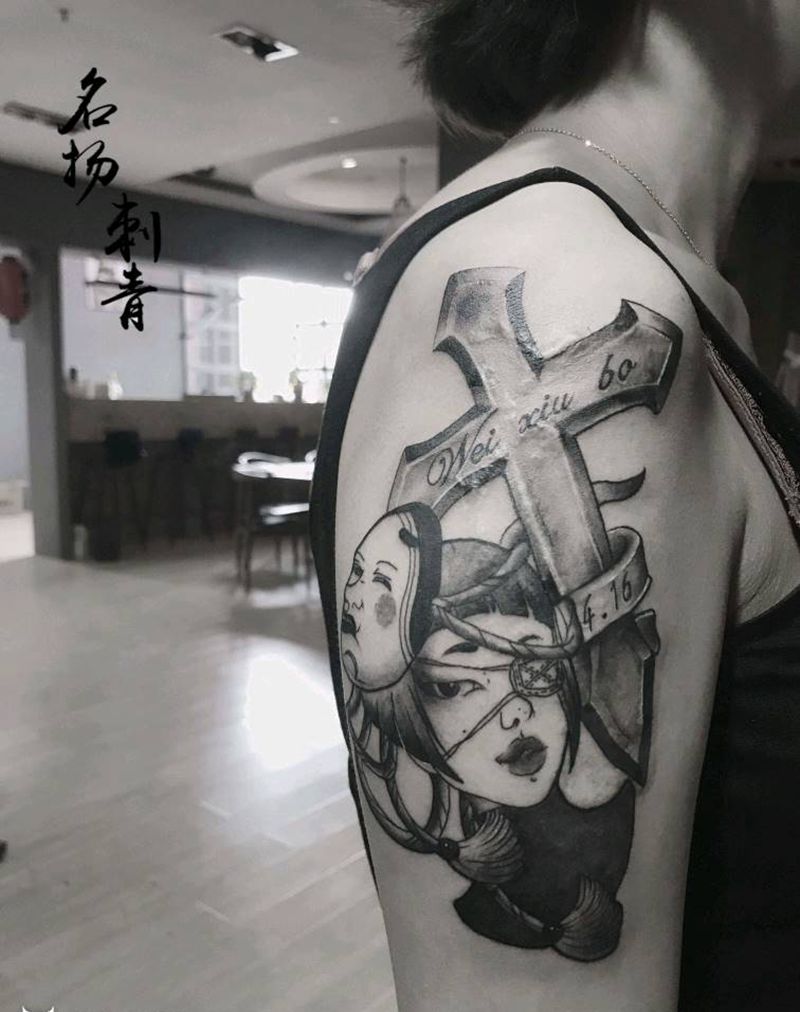 • 纹身吧推荐的披肩图腾半胛纹身图案作品展示