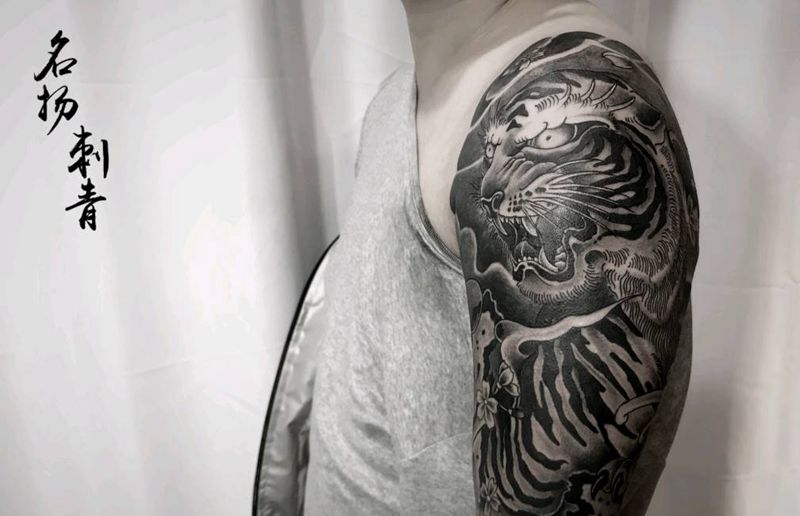 黑灰满背纹身图案