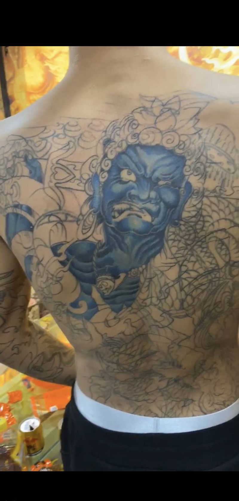 当前位置: 首页 >河北省沧州市纹身店-神龍刺青纹身店纹身图案>暴力遮盖不动明王纹身图片_背部腿部新传统水墨遮盖纹身图案