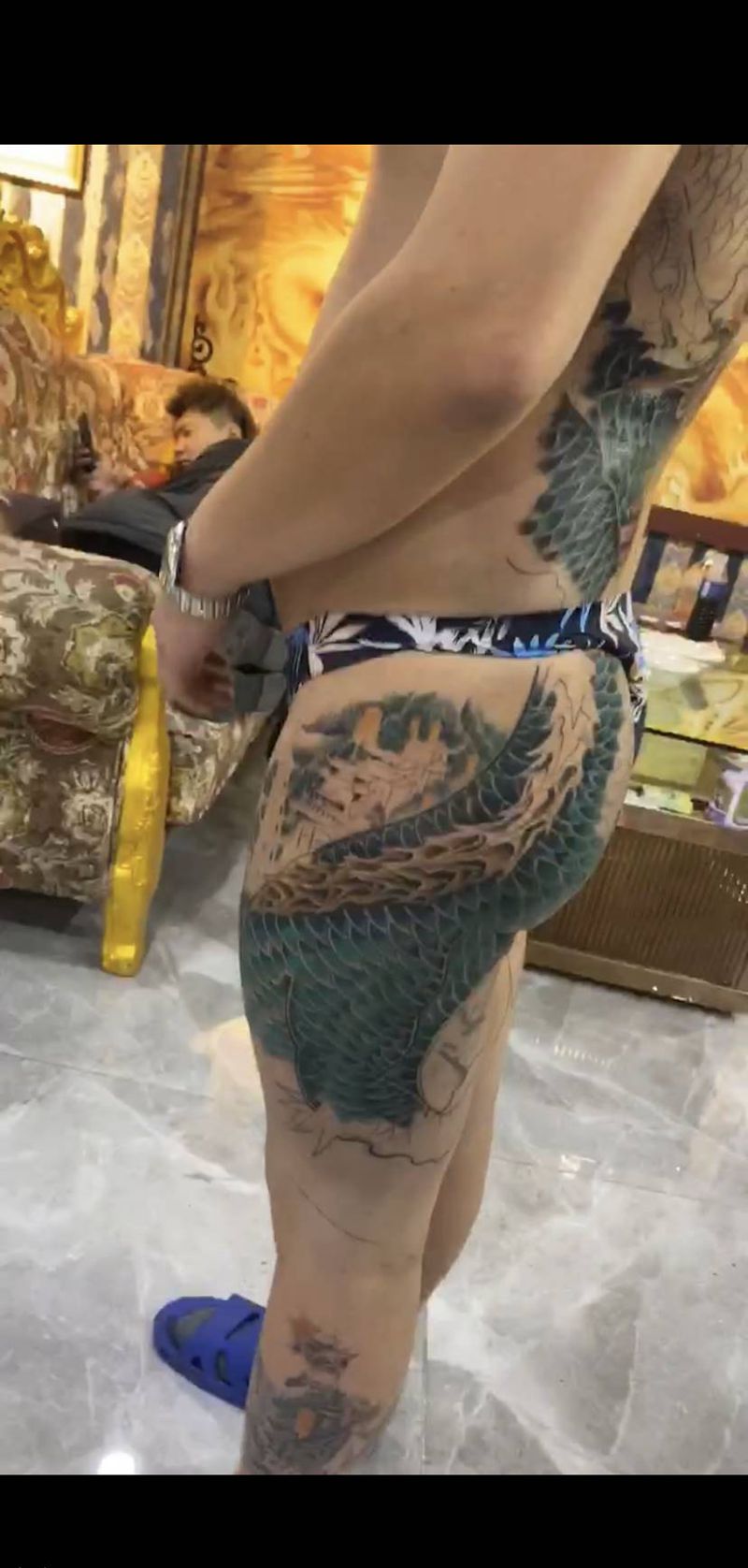 • T网红王老大花腿龙纹身图片_腿部新传统纹身图案