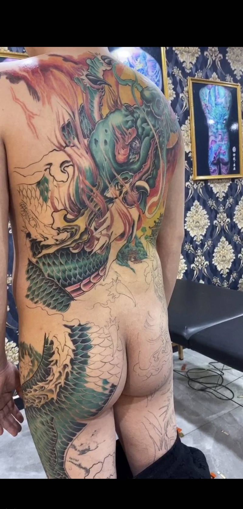 当前位置: 首页 >河北省沧州市纹身店-神龍刺青纹身店纹身图案>龙游山河。添加了傅海林老师的手纹身图片_背部臀部新传统老传统纹身图案