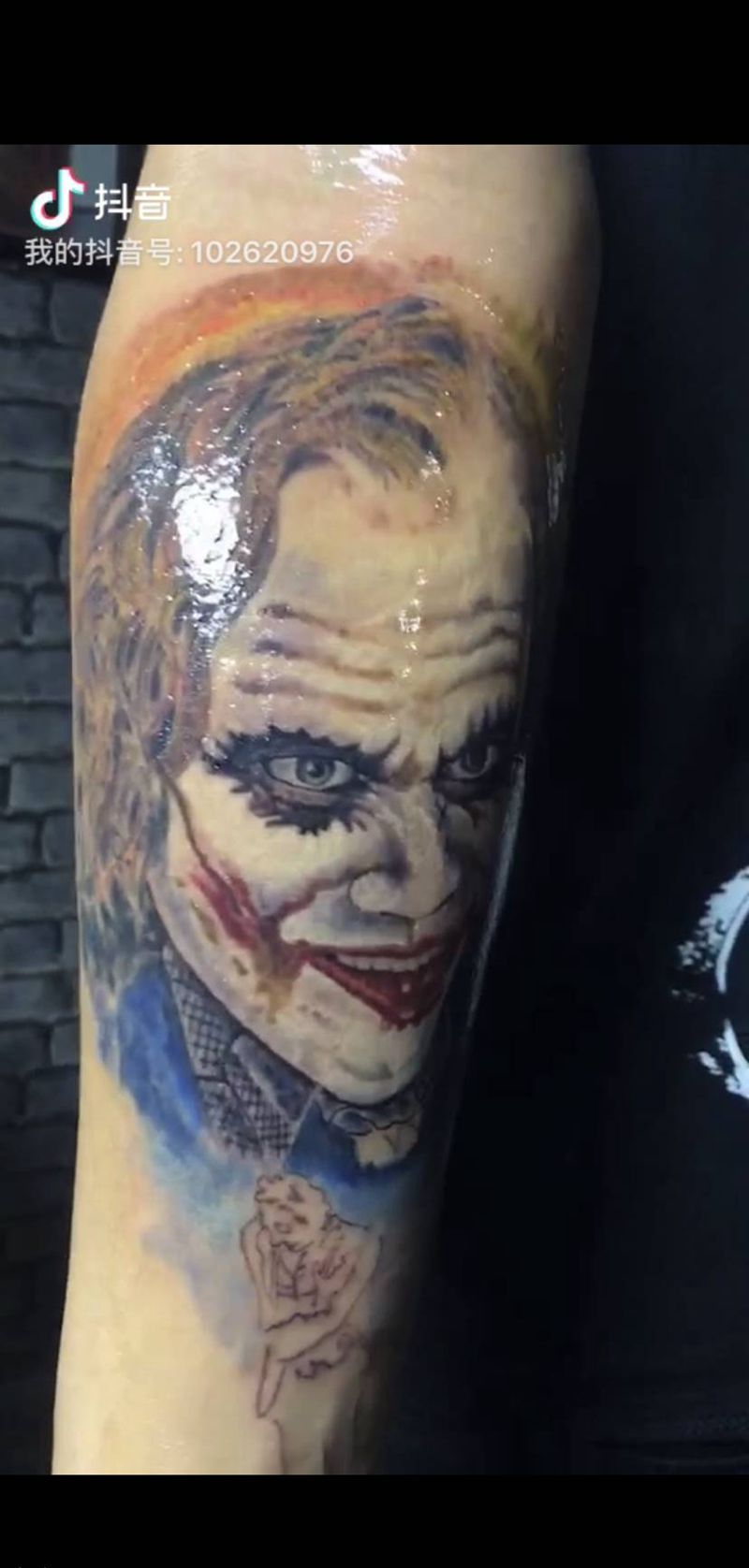 当前位置: 首页 >河北省沧州市纹身店-神龍刺青纹身店纹身图案>小丑纹身图片_手臂欧美写实纹身图案