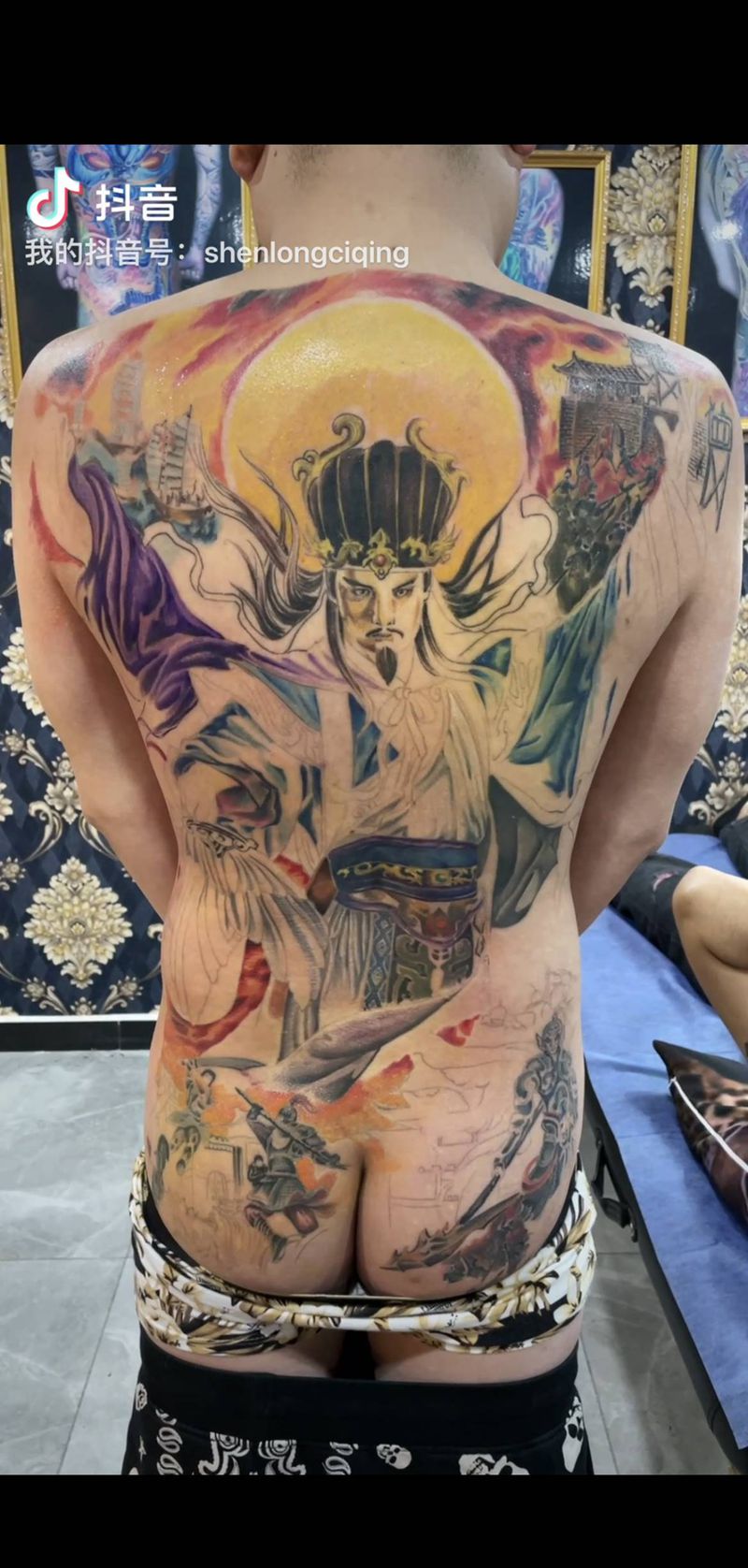 诸葛亮未完成纹身图片_背部臀部欧美写实新传统人物纹身图案
