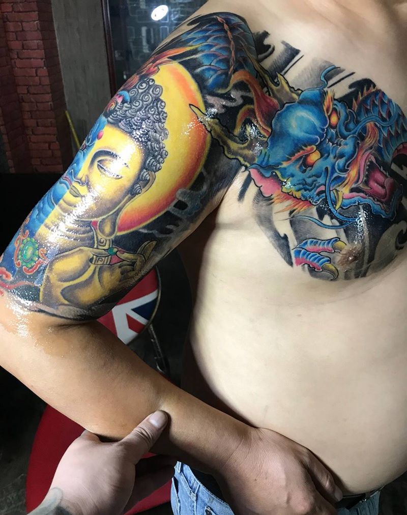 当前位置: 首页 >河北省沧州市纹身店-神龍刺青纹身店纹身图案>半甲纹身图片_胸部新传统一念之间纹身图案