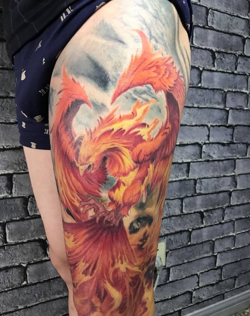 • T网红王老大花腿龙纹身图片_腿部新传统纹身图案