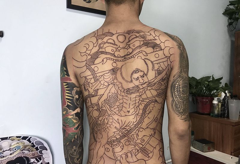 • 黑灰满背纹身图案