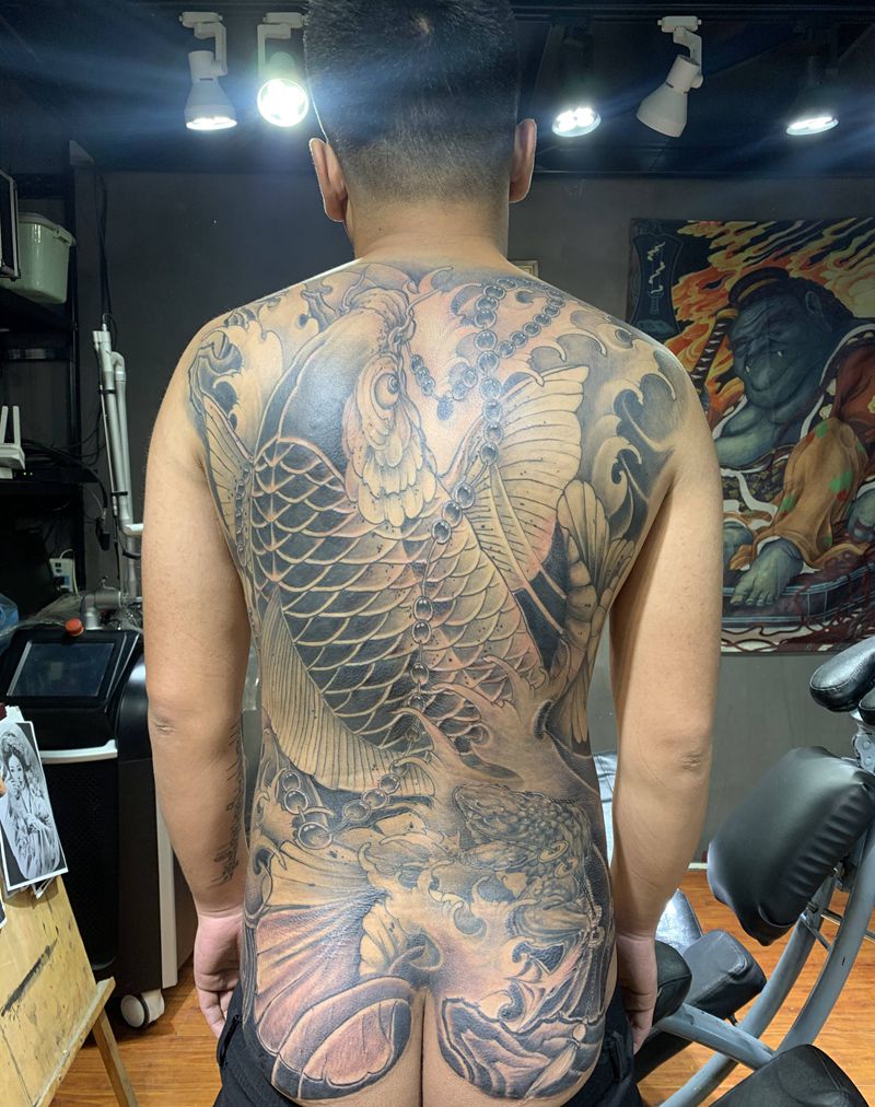 当前位置: 首页 >河北省沧州市纹身店-黄骅小伟纹身工作室纹身图案>招财大鲤鱼纹身图片_背部纹身图案