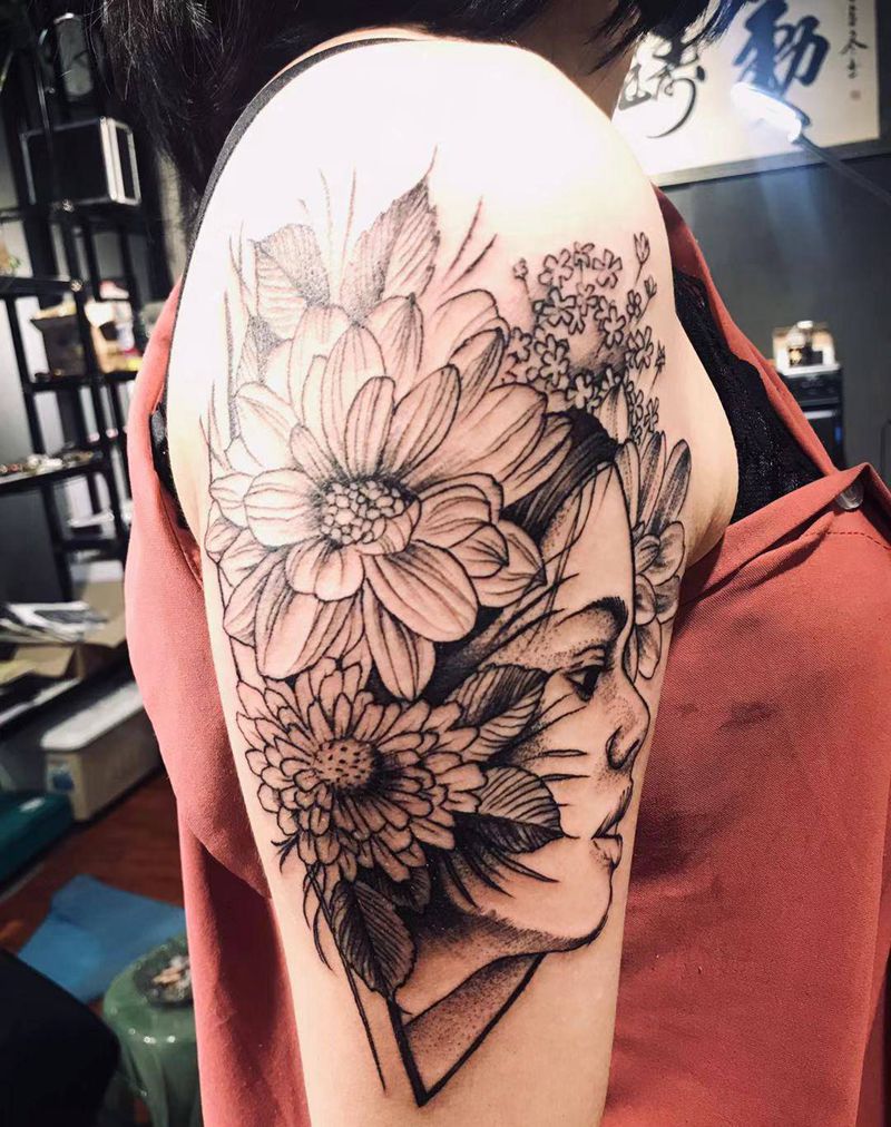• 女性大花胸纹身_43张霸气漂亮的女性大花胸纹身图案作品