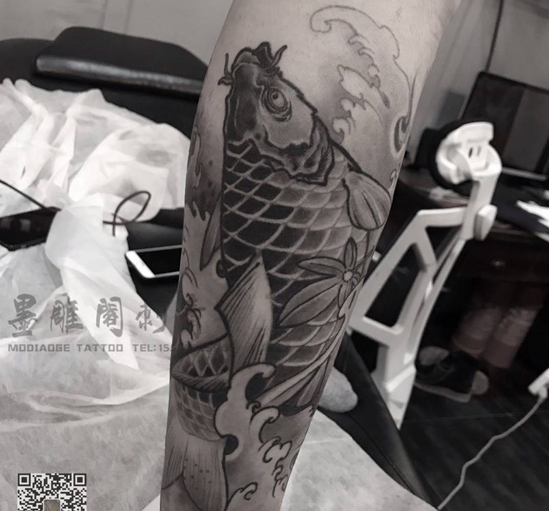 当前位置: 首页 >河北省沧州市纹身店-京南刺青纹身图案>包小腿鲤鱼纹身图片