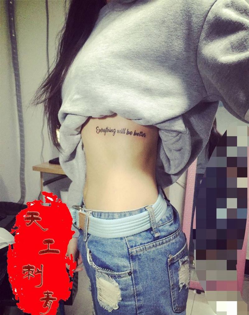 • T关于私处得爱!纹身图片_成品腹部清新字符图腾纹身图案