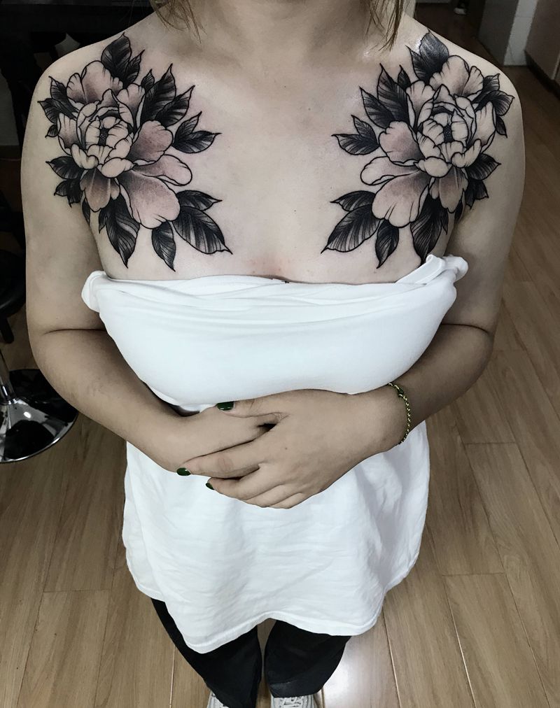 • 女性大花胸纹身_43张霸气漂亮的女性大花胸纹身图案作品