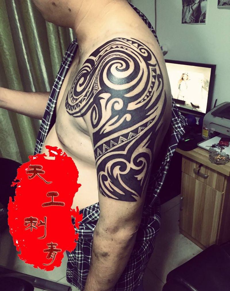 • 纹身吧推荐的披肩图腾半胛纹身图案作品展示