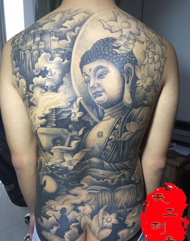 当前位置: 首页 >河北省廊坊市纹身店-天工刺青纹身图案>满背大佛纹身图片