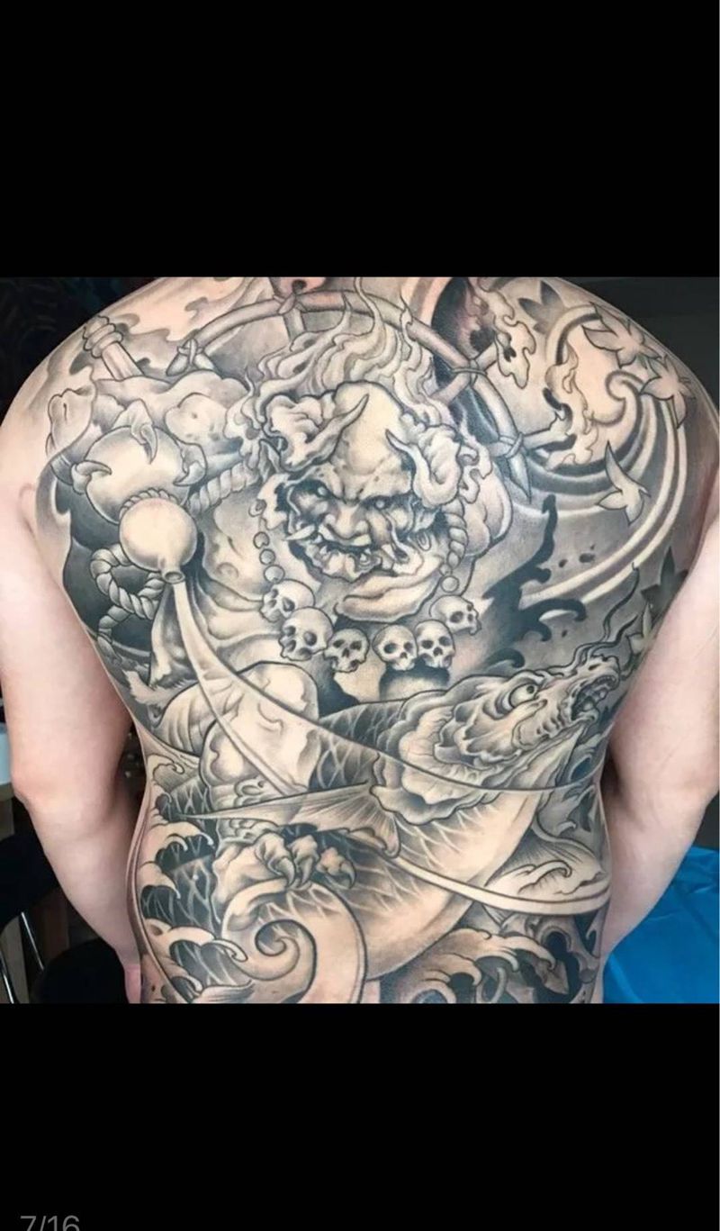 黑灰满背纹身图案