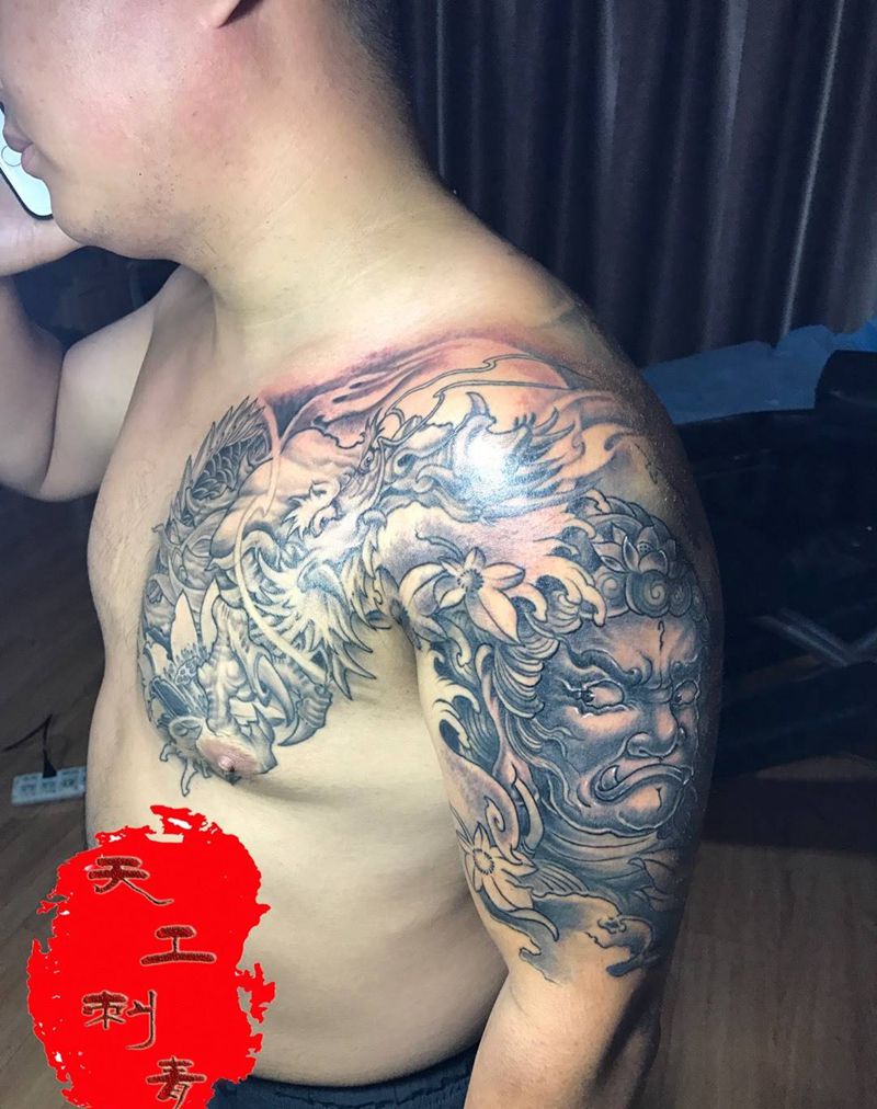 • 纹身吧推荐的披肩图腾半胛纹身图案作品展示
