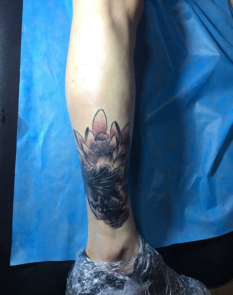 • T网红王老大花腿龙纹身图片_腿部新传统纹身图案