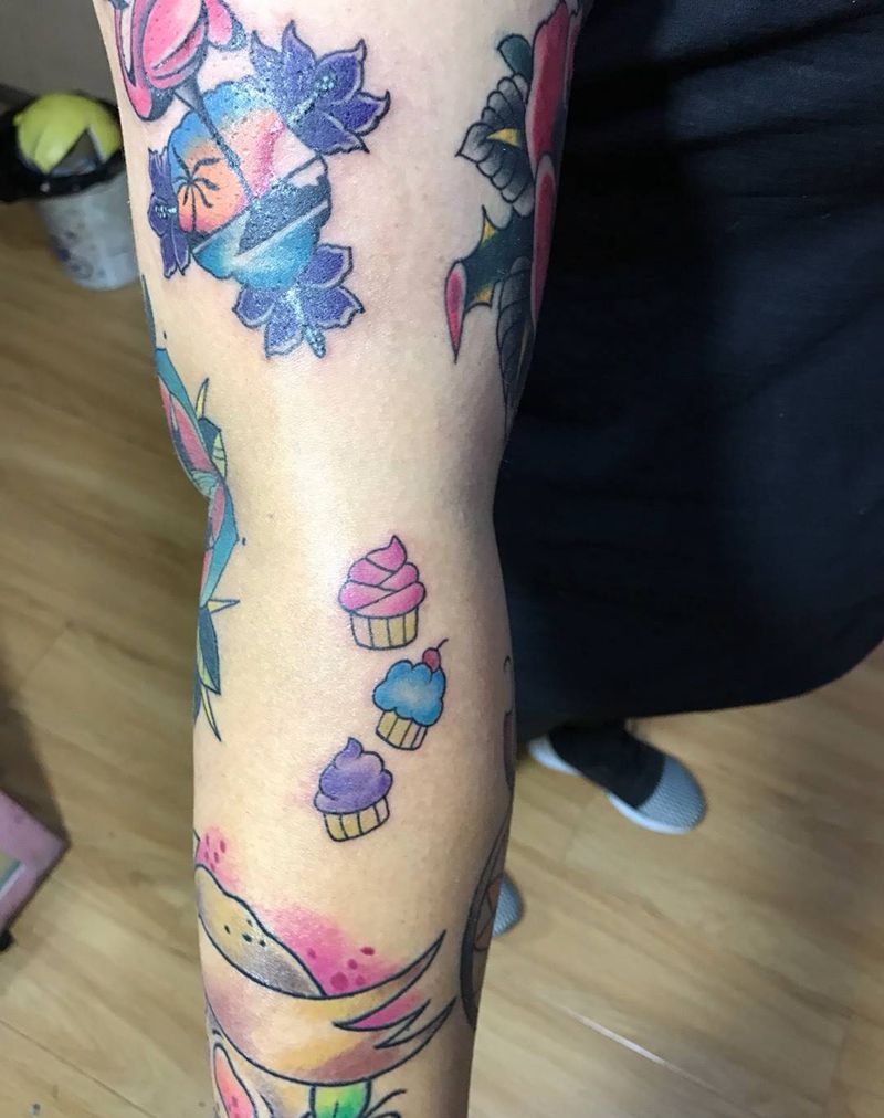 当前位置: 首页 >河北省廊坊市纹身店-天工刺青纹身图案>彩色拼接花臂纹身图片