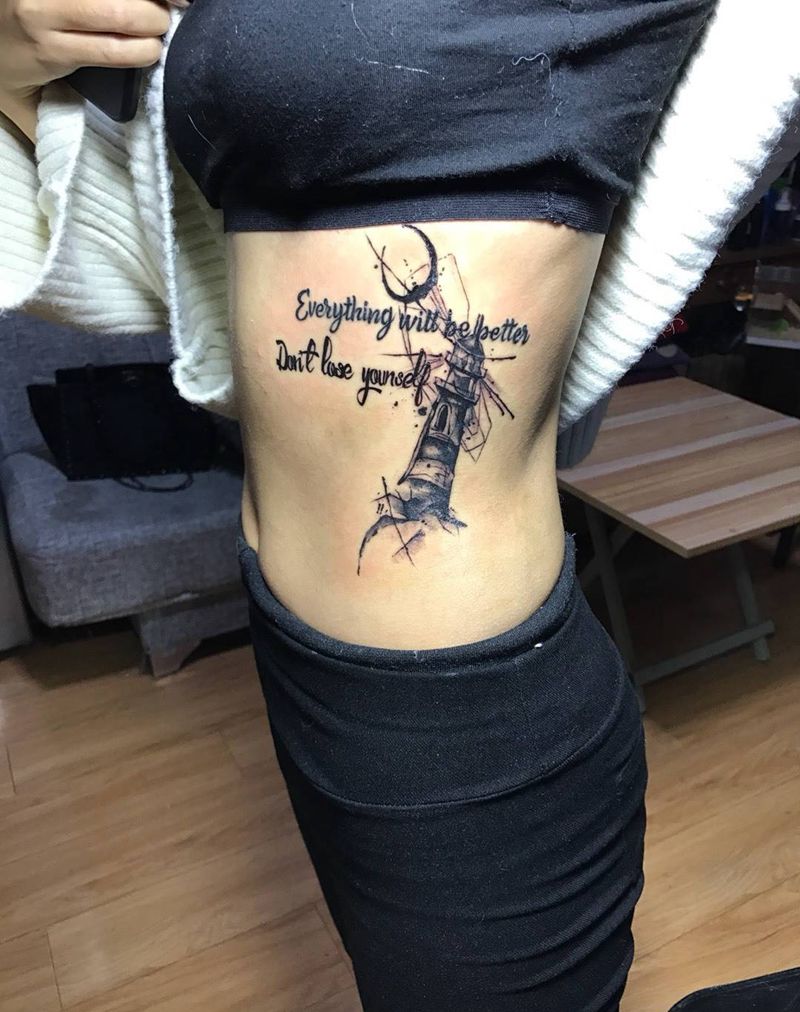 • T关于私处得爱!纹身图片_成品腹部清新字符图腾纹身图案