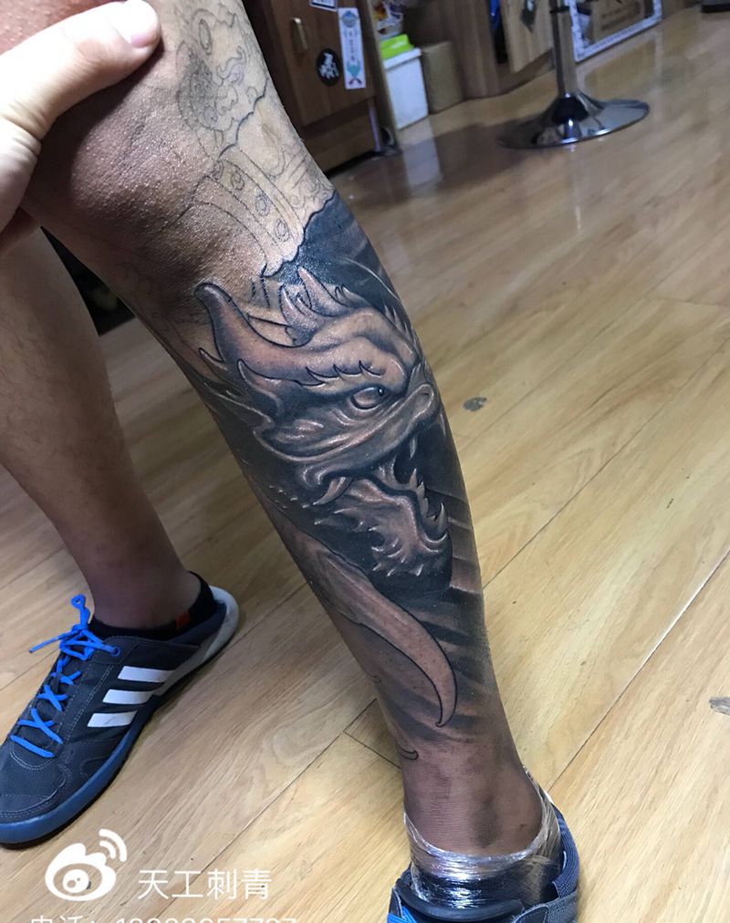 • T网红王老大花腿龙纹身图片_腿部新传统纹身图案