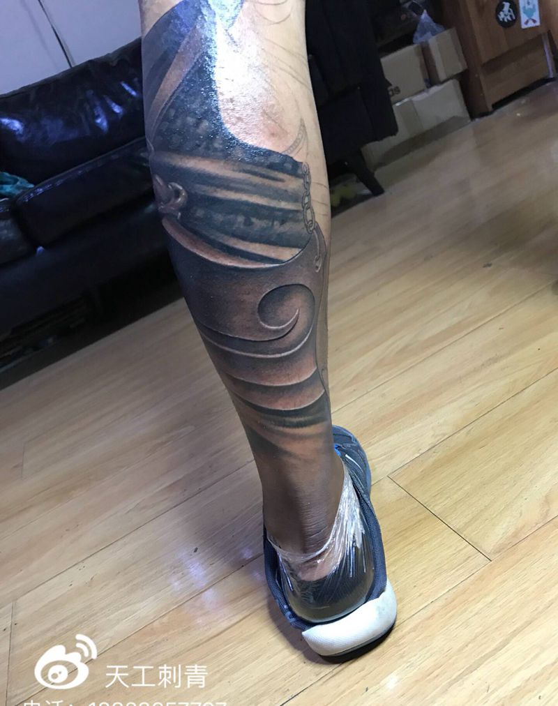 • T网红王老大花腿龙纹身图片_腿部新传统纹身图案