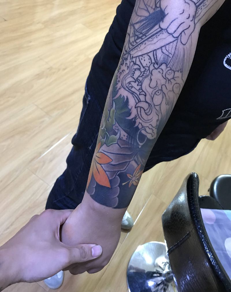 当前位置: 首页 >河北省廊坊市纹身店-天工刺青纹身图案>未完成作品纹身图片_手臂纹身图案
