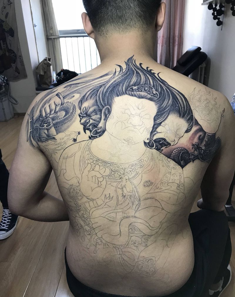 秽迹金刚纹身图片_背部新传统纹身图案
