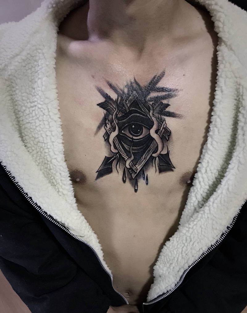 上帝之眼纹身图片_胸部欧美写实纹身图案