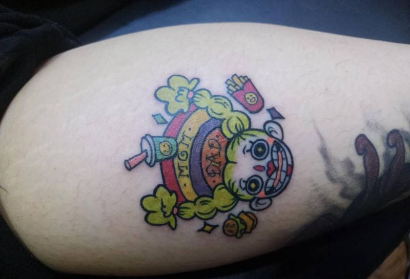 • T包小腿吹火男+阿多福纹身图片_腿部老传统新传统吹火男阿