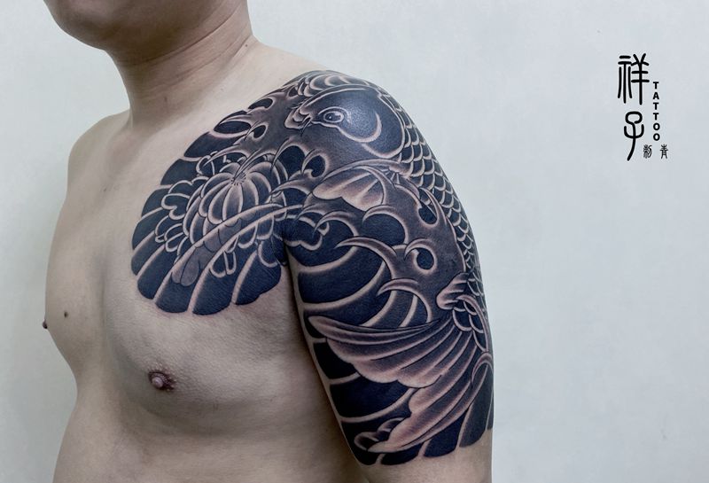 日式半甲纹身图片_胸部手臂老传统纹身图案