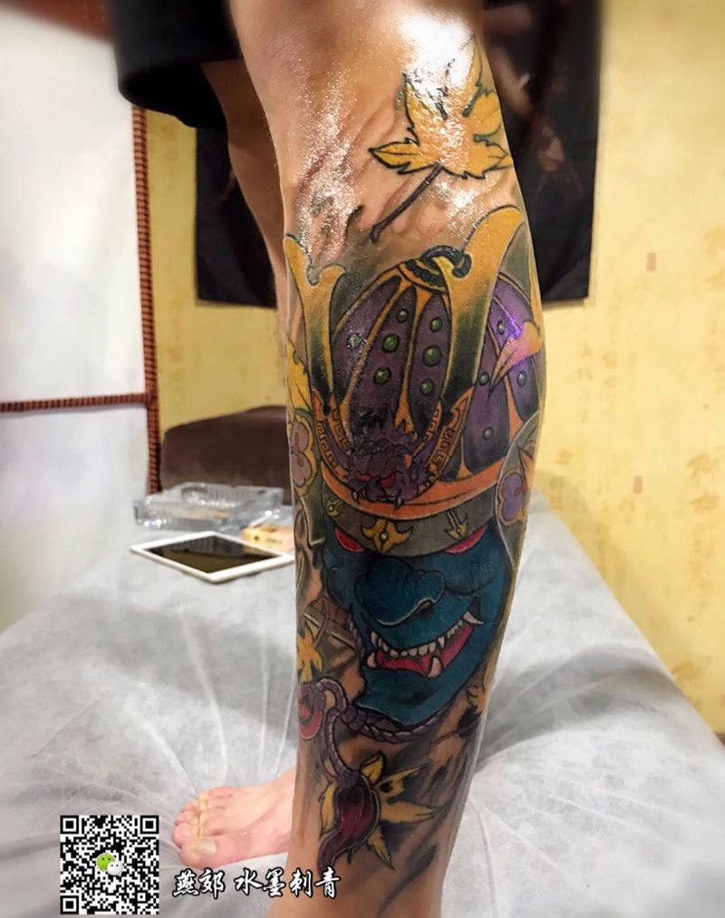 般若武士~纹身图片_成品脚部腿部传统鬼神武士般若纹身图案